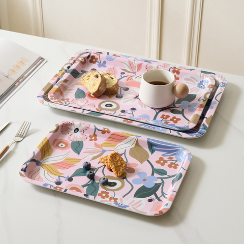 Bandeja de plástico RPET con estampado duradero, bandeja rodante cuadrada grande para alimentos, bandeja para frutas secas