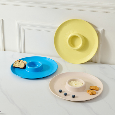 Vajilla De plástico reciclable para cocina, plato de bola de masa con compartimento para salsa